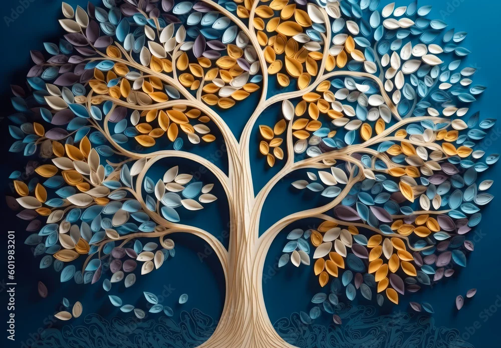 Fototapeta samoprzylepna 3d wallpaper abstract of colorful floral tree decor, red and sephia fantasy background. Decorative wall art. Generative AI