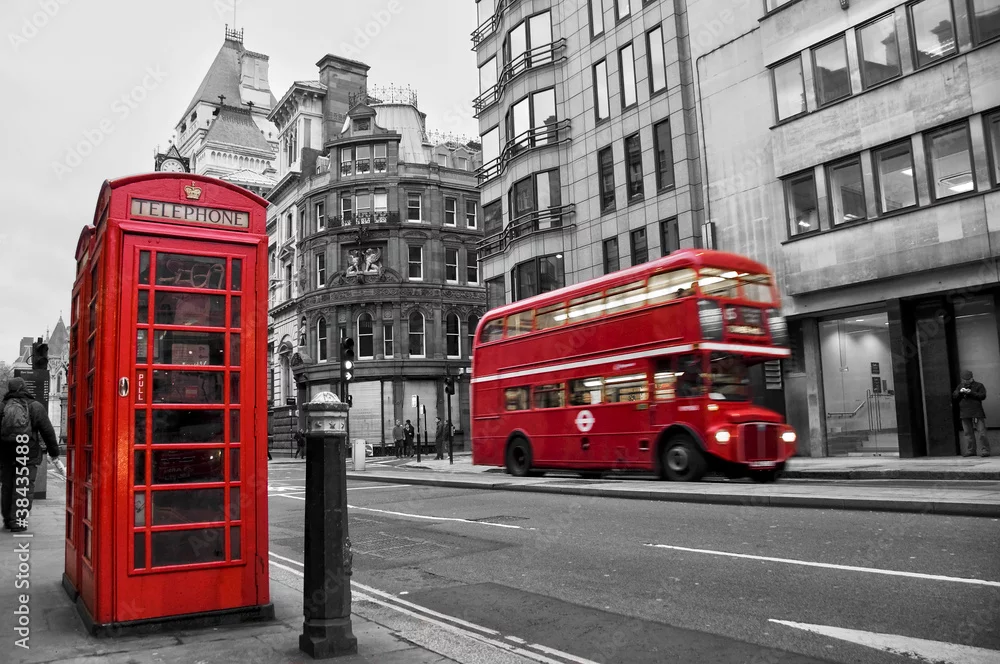 Fototapeta samoprzylepna budka telefoniczna i czerwony autobus w Londynie