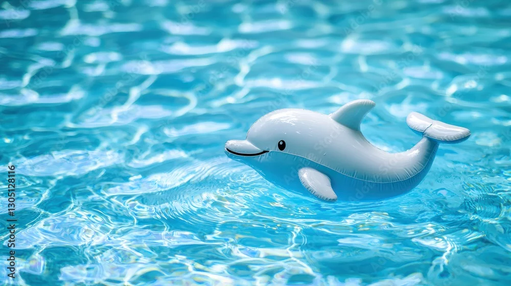 Fototapeta samoprzylepna A buoy shaped like a playful dolphin floating in a children’s swimming pool.
