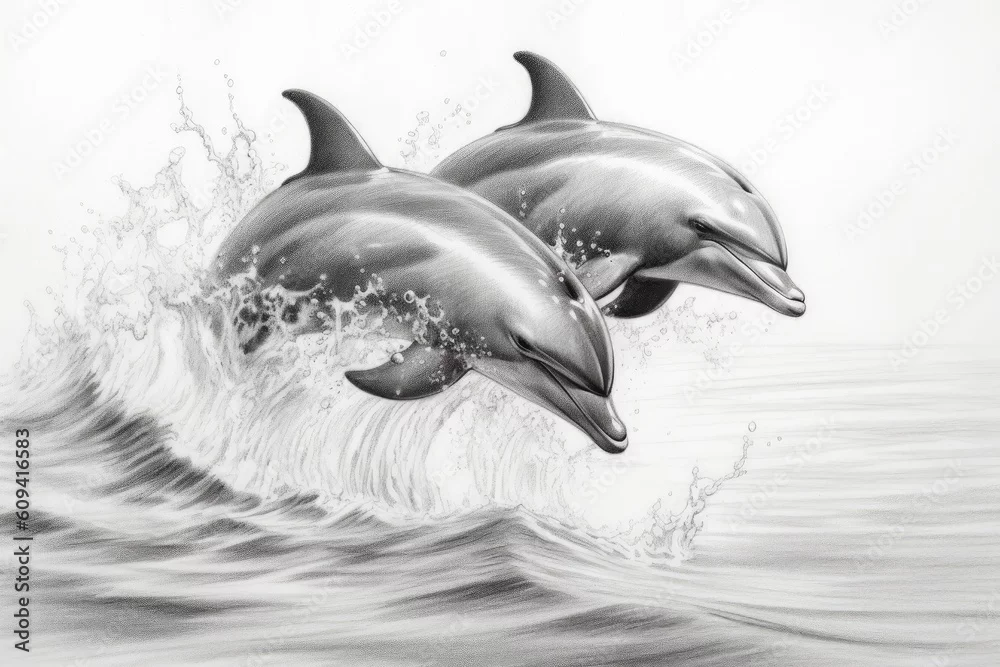Fototapeta samoprzylepna Dolphins drawing, dolphins pencil drawing vintage. Generative Ai.