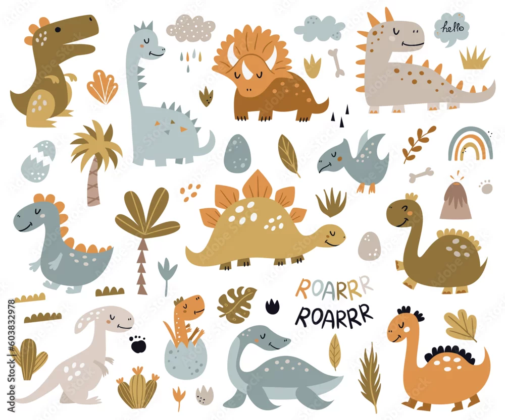 Fototapeta samoprzylepna Big collection of cute dinosaurs.