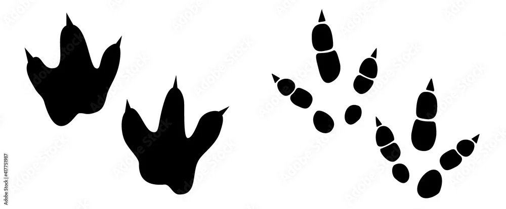 Fototapeta samoprzylepna Dinosaur footprint tracks vector set illustration. Background with paw, claw predator. Dinosaur footprint illustration perfect for textile, wrap and wallpaper and design.
