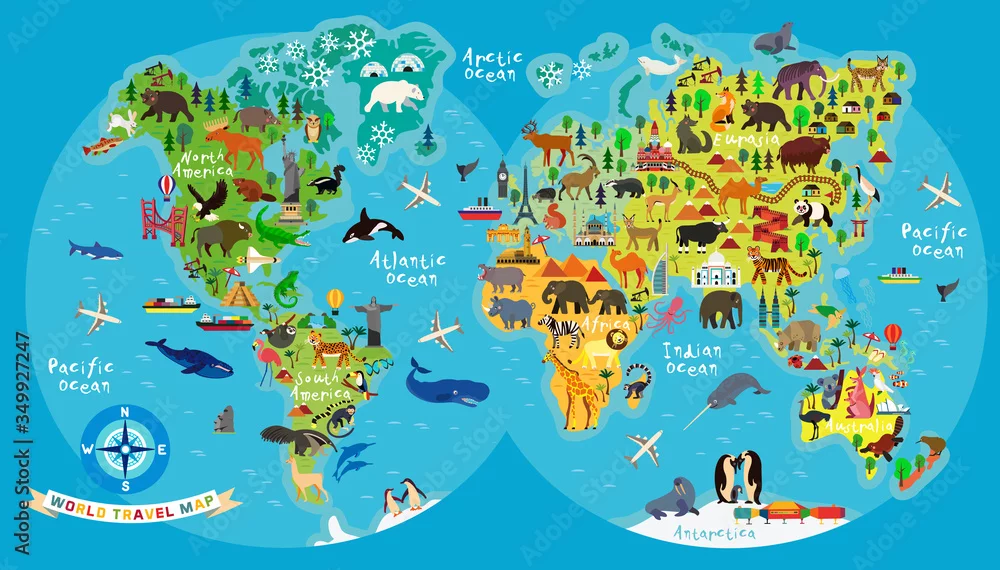 Fototapeta samoprzylepna Mapa świata zwierząt
