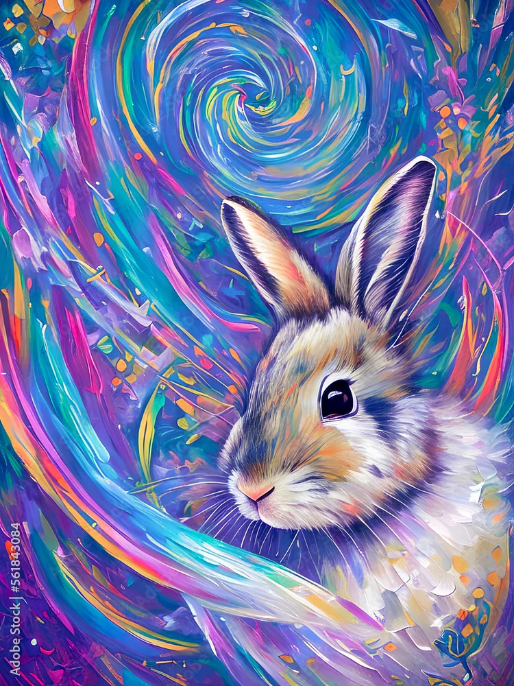 Fototapeta samoprzylepna Słodki króliczek na kolorowym tle, wygenerowane przez sztuczną inteligencję