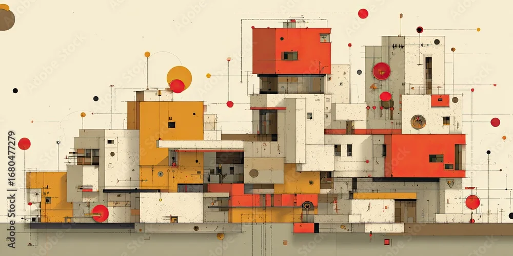 Fototapeta samoprzylepna Abstract architectural illustration of a city, with blocks of varying colors, suggesting a futuristic or experimental design