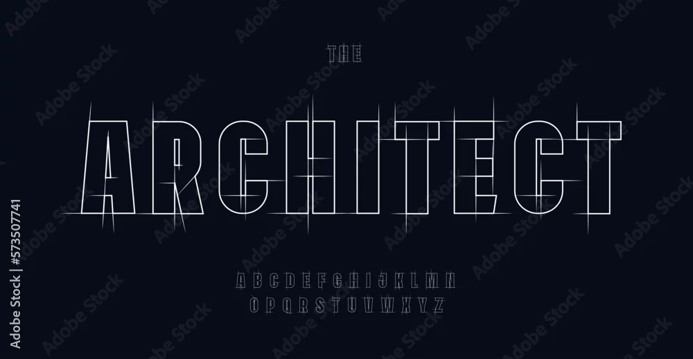 Fototapeta samoprzylepna Architect alphabet, blueprint geometric letters, construction plan font for engineering logo, drafting project headline, building floor plan typography, CAD typo graphic. Vector typographic design