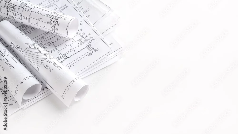 Fototapeta samoprzylepna Architects concept, engineer architect designer freelance work on start-up project drawing, construction plan architect design working drawing sketch plans blueprints and making construction model