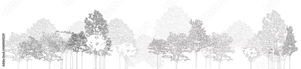 Fototapeta samoprzylepna Architectural Drawings, Minimal style cad tree line drawing, Side view, set of section wetland forest outline for landscape design drawing. Vector illustration in seperate element