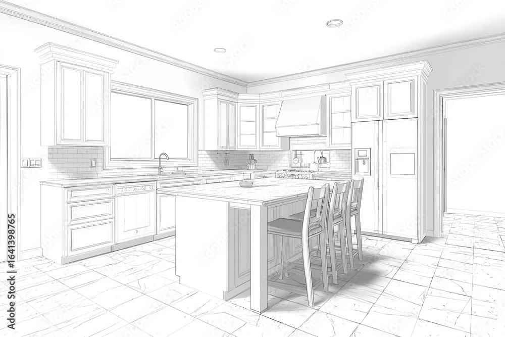Fototapeta samoprzylepna Interior architectural sketch of a modern kitchen design.