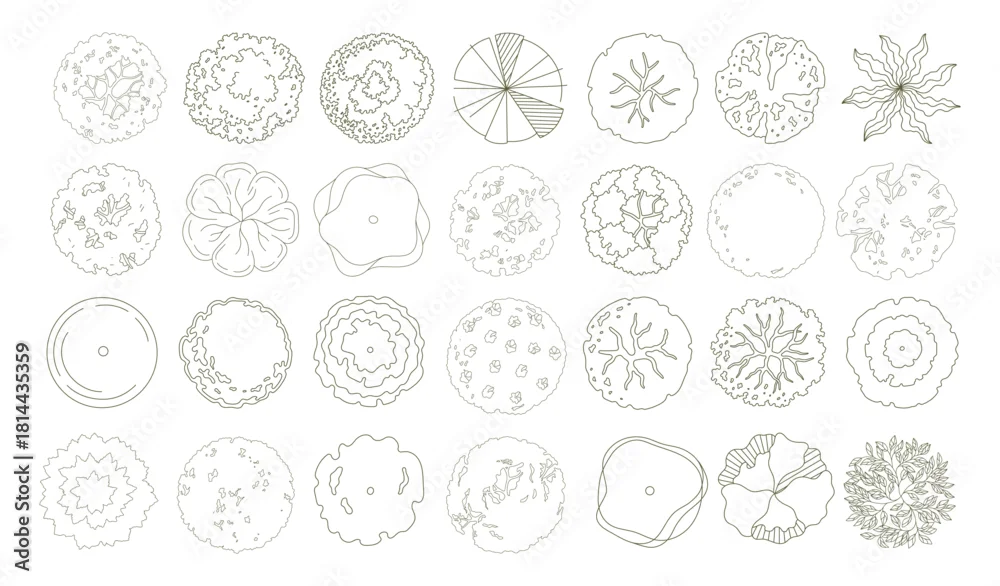 Fototapeta samoprzylepna Top view trees for architectural plans and landscape design. Minimal vector illustration for urban planning, site plans, and architectural entourage. - do architekta - Picturewall.pl