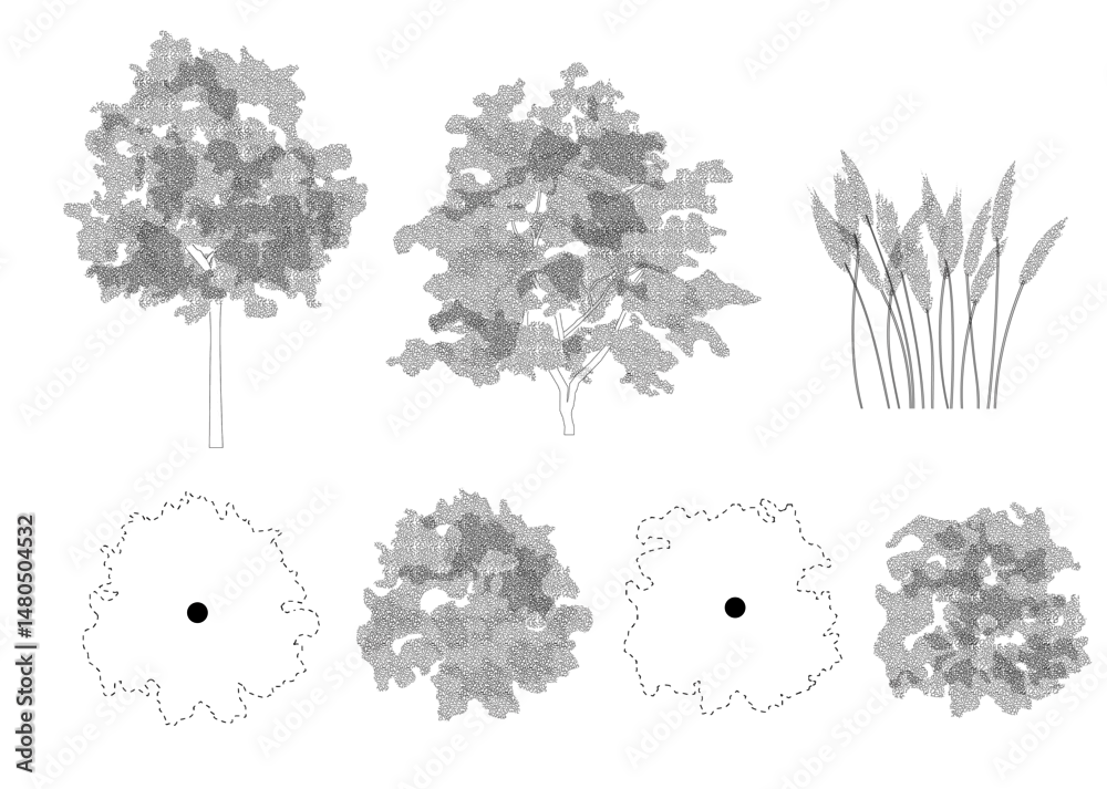 Fototapeta samoprzylepna Trees in elevation and plan view for use in architectural drawings - do architekta - Picturewall.pl