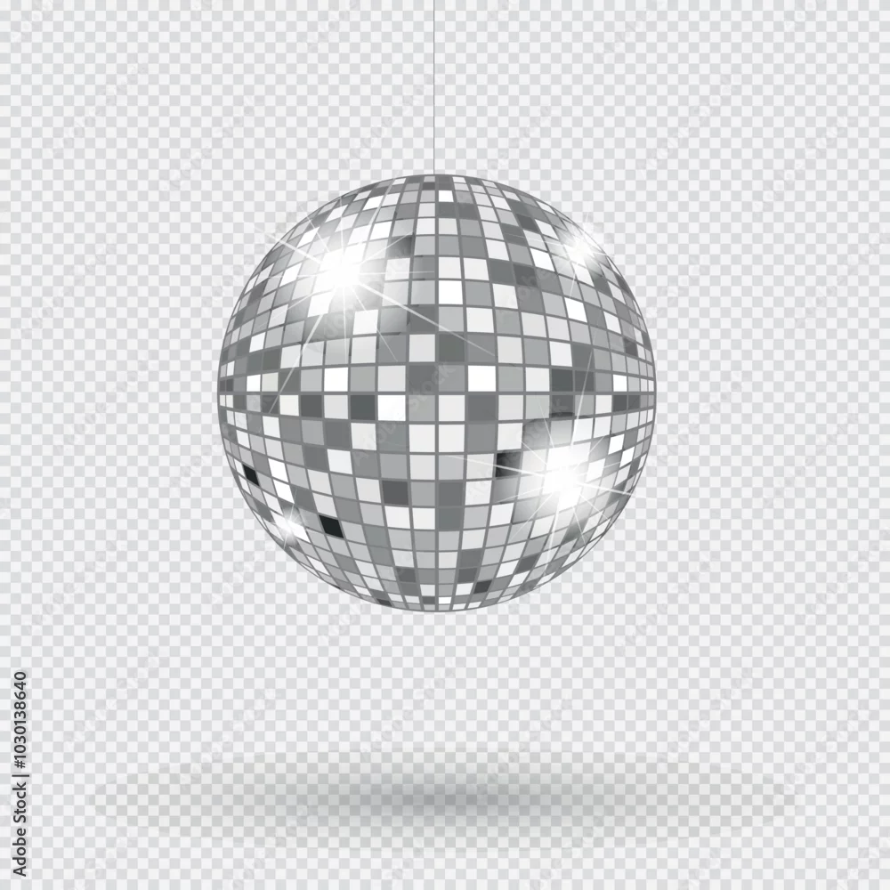 Fototapeta samoprzylepna Disco ball for nightclubs and discotheques. Shining spheres for music party. Shiny mirror disco ball.