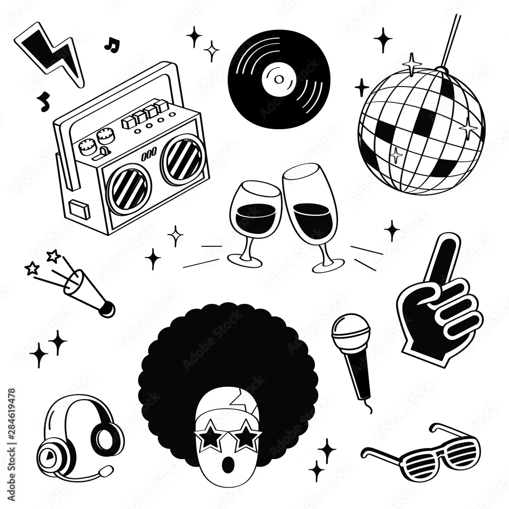 Fototapeta samoprzylepna Hand drawing styles disco items. Disco doodle