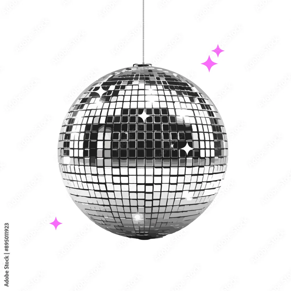 Fototapeta samoprzylepna Shiny disco ball halftone photocopy stipple effect collage element with sparkling reflections isolated on white background for party and celebration theme.