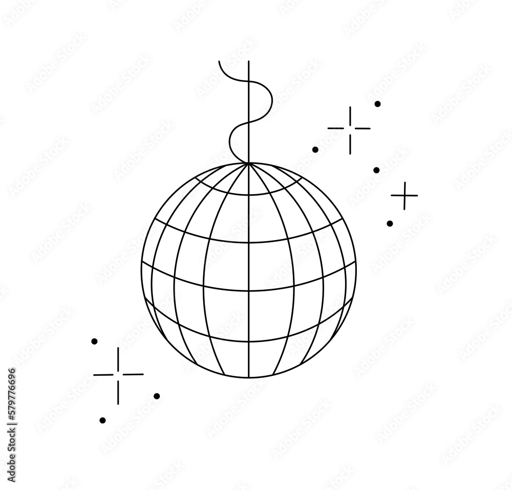 Fototapeta samoprzylepna Vector isolated one single round mirror disco ball colorless black and white contour line easy drawing