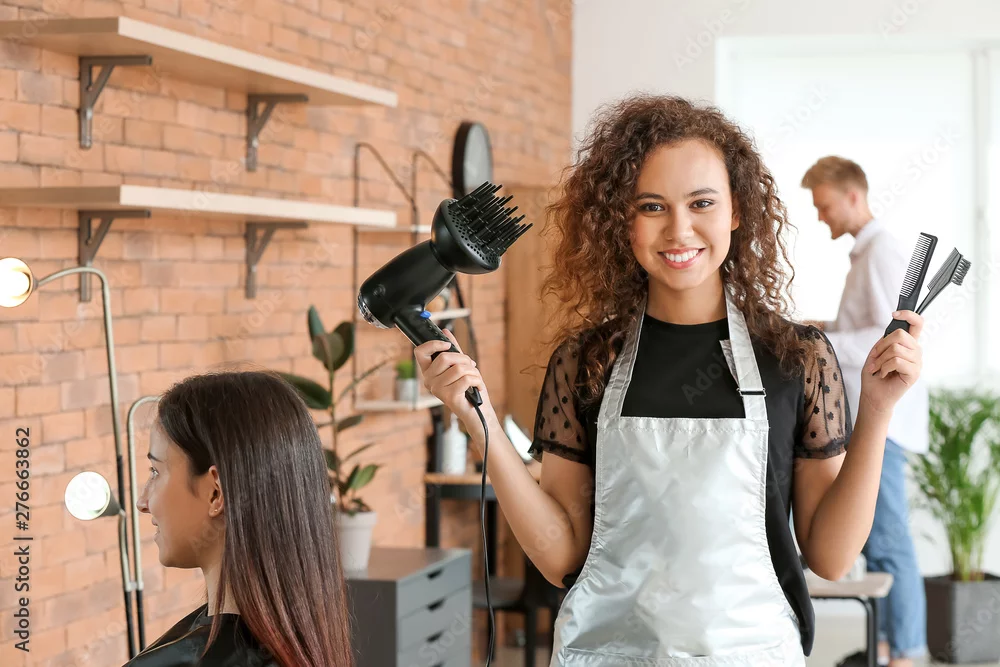 Fototapeta samoprzylepna Młody afroamerykański fryzjer w salonie piękności