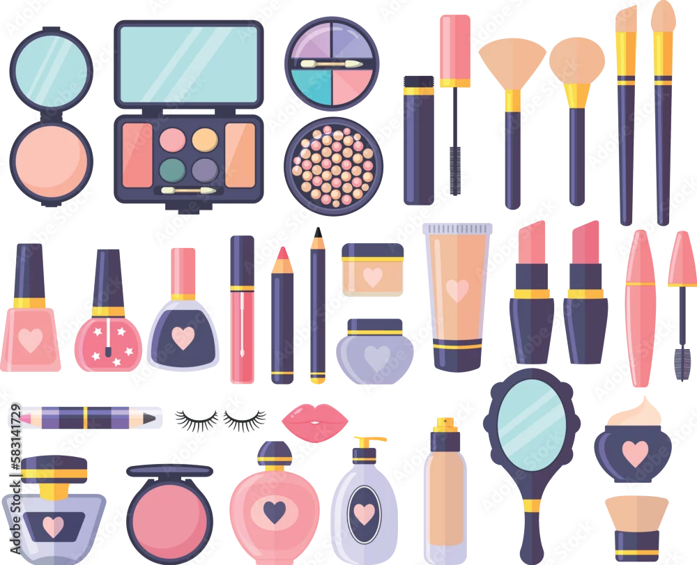 Fototapeta samoprzylepna Cosmetic set . Glamor makeup accessories. Set of professional facial cosmetic fashion. Cosmetics .