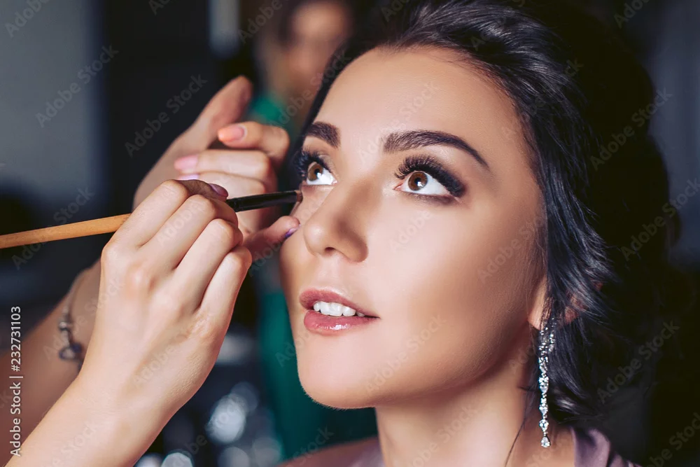 Fototapeta samoprzylepna The bride is put on makeup before the wedding ceremony - do gabinetu kosmetycznego - Picturewall.pl