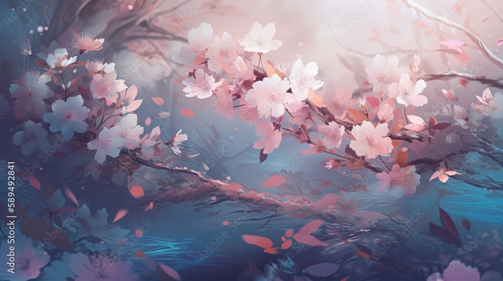 Fototapeta samoprzylepna ilustracja gałęzi kwiatu wiśni, wygenerowana przez AI