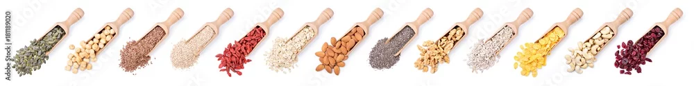 Fototapeta samoprzylepna nasiona i suszone owoce w drewnianych łyżkach