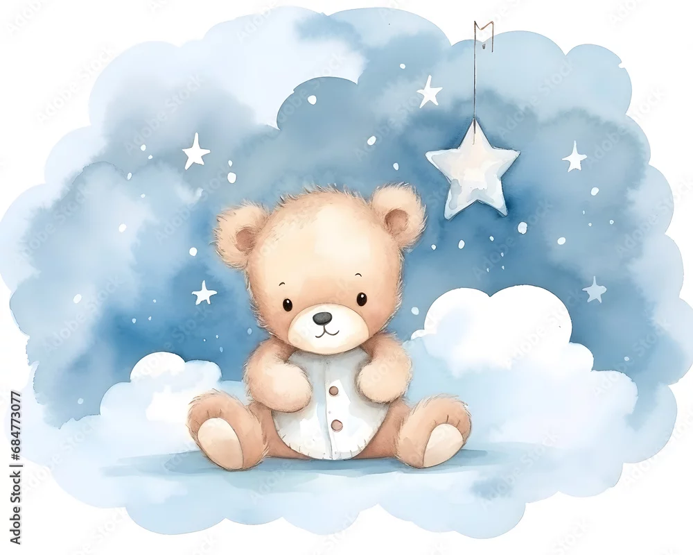 Fototapeta samoprzylepna Słodki miś na tle nieba i chmur