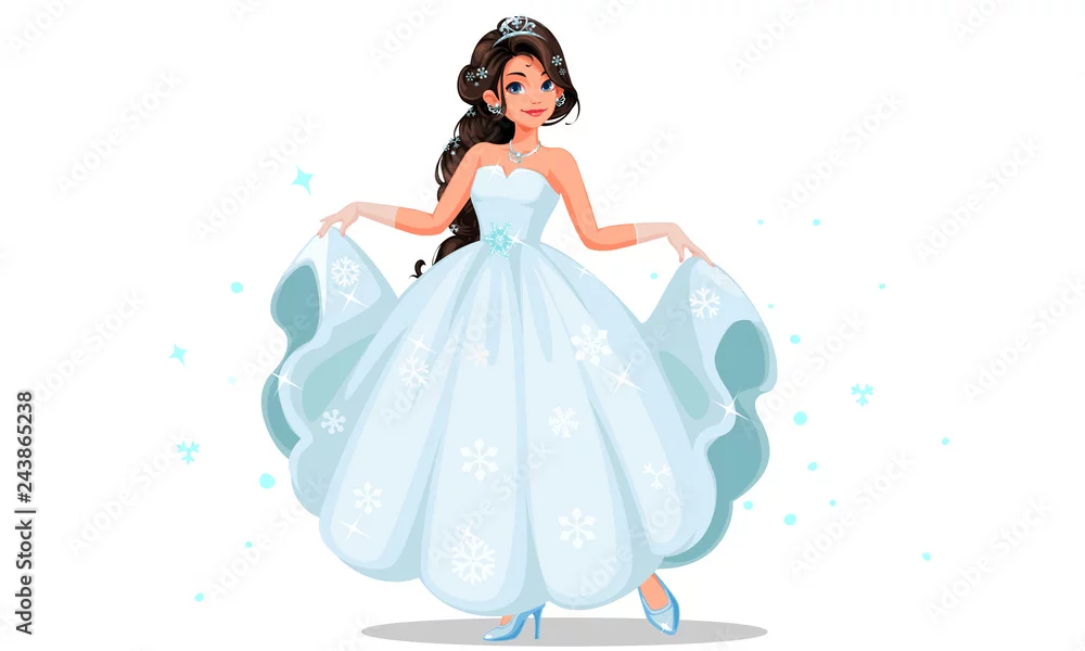 Fototapeta samoprzylepna Piękna, urocza księżniczka z misterną fryzurą w długiej jasnej sukni