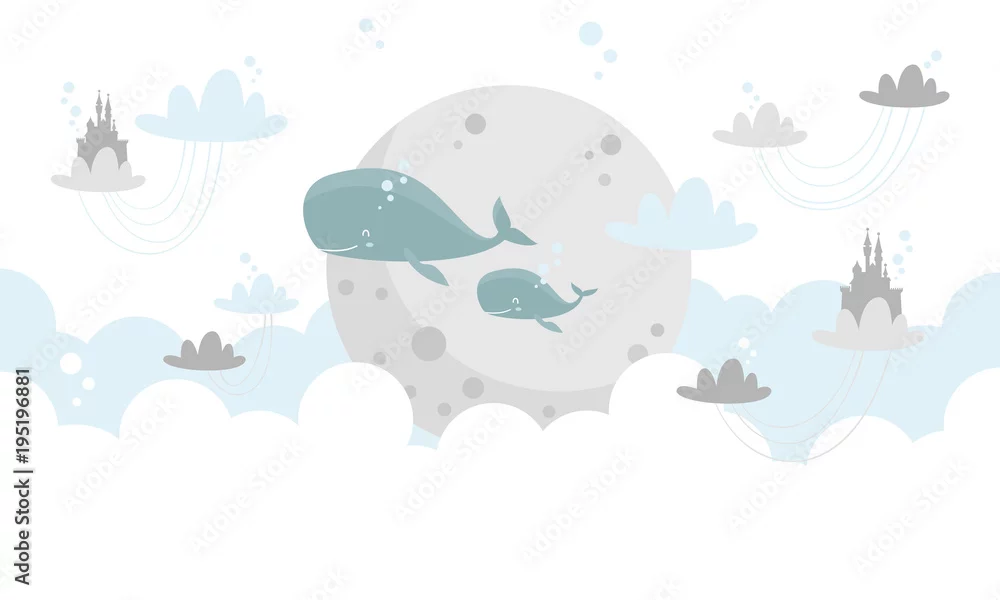 Fototapeta samoprzylepna wieloryby płynące wśród chmur