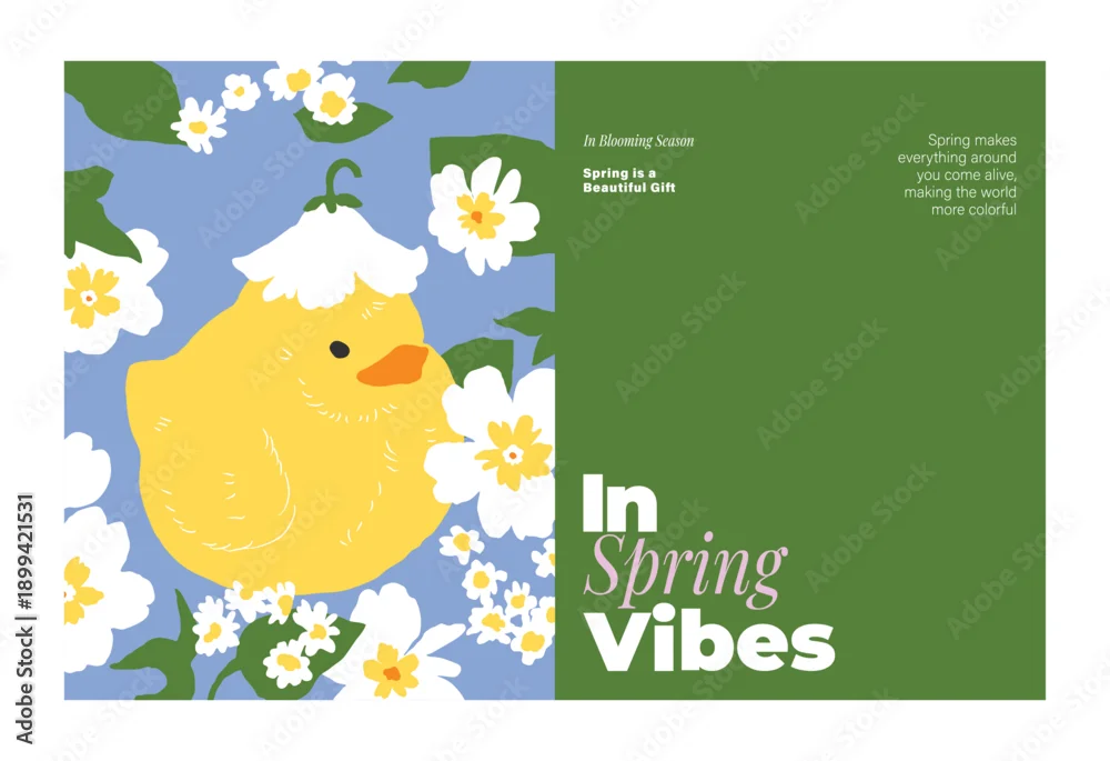 Abstract Green Summer landscape background vector set. Nature wallpaper of white flowers and chicken. Watercolor illustration for cover, wall art, decoration.
