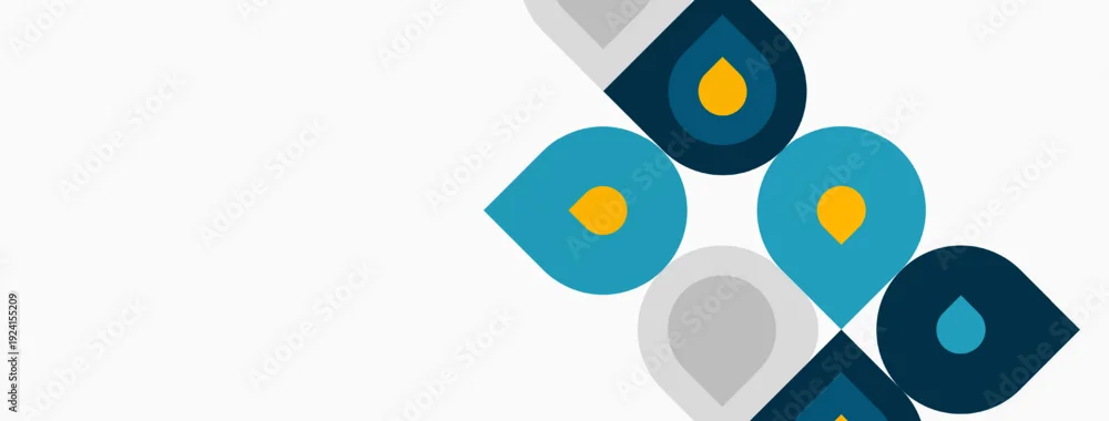 Fototapeta samoprzylepna Abstract water drops, blue, orange, gray hues. Minimalist design, clean lines, simple shapes, modern aesthetic. Fluidity suggested.