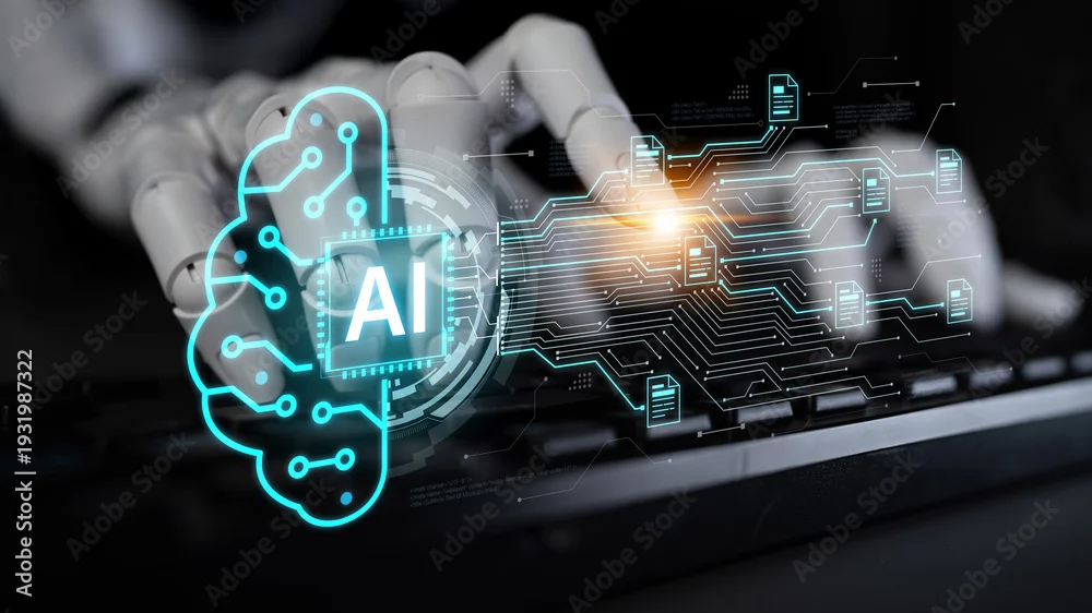 Fototapeta samoprzylepna Artificial intelligence using AI neural processing and circuit to transform AI data into actionable output by smart automated AI reasoning science. Future of cognitive tech deep learning NPU. Corpus