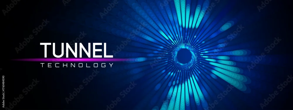 Fototapeta samoprzylepna Background tunnel abstract with quantum portal and science binary for funnel black or connect future illustration. Blue speed art and particle gravity with lattice network and perspective flow design.