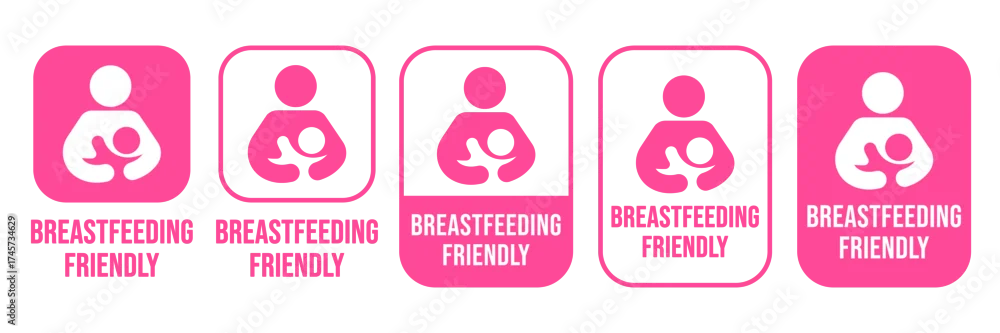 Fototapeta samoprzylepna Breastfeeding icon set. Breastfeeding Friendly label. Baby care symbol. Mother and baby icons. Breastfeeding logo, badge, symbol, black, line, flat vector, isolated illustration. - do przedpokoju - Picturewall.pl