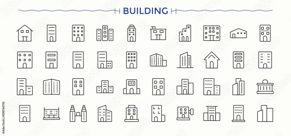 Fototapeta samoprzylepna Building icon set. Pack of house, town, home, office, real estate, villa and more. Architecture line icon set. Thin web icons. Editable stroke.