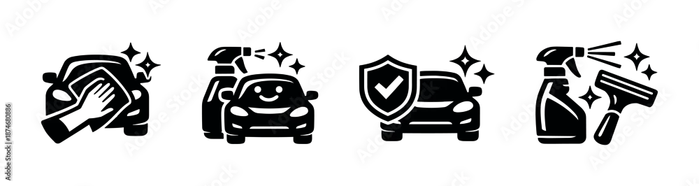 Fototapeta samoprzylepna Car wash vector icons set: cleaning symbols, auto detailing elements