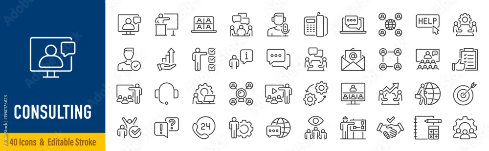 Fototapeta samoprzylepna Consulting web icons in line style. Consultation, meeting, conference, service, communication, collection. Vector illustration.