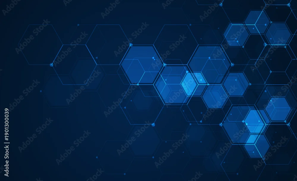 Fototapeta samoprzylepna Digital technology background. Abstract hexagons background with lines and dots. Design for science, medicine or technology