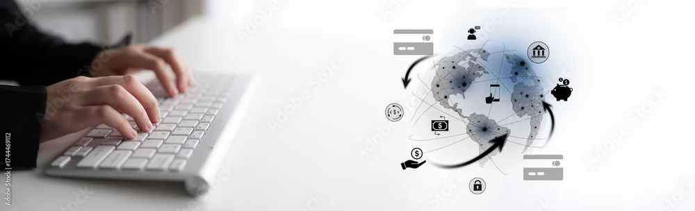 Fototapeta samoprzylepna Global digital payment network connecting users, banks, and financial services worldwide through mobile, secure, and efficient transactions in real time Latch