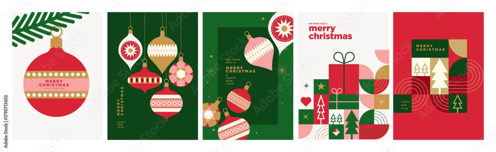 Merry Christmas and Happy New Year greeting cards for business and personal use. Colorful modern vector illustrations for greeting card, website banner, social media banner, marketing material.