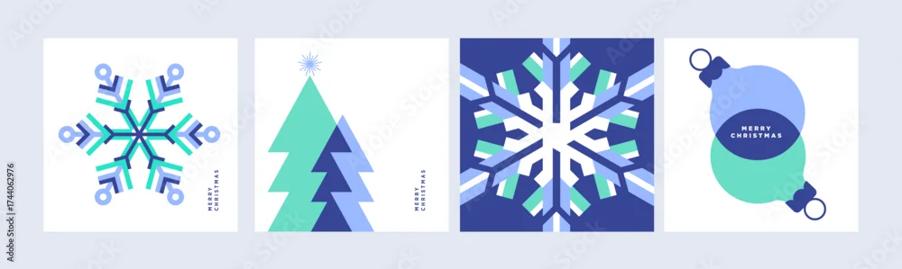 Merry Christmas and Happy New Year greeting cards. Vector illustration templates for holiday greeting card, background, website and social media banner, marketing material.