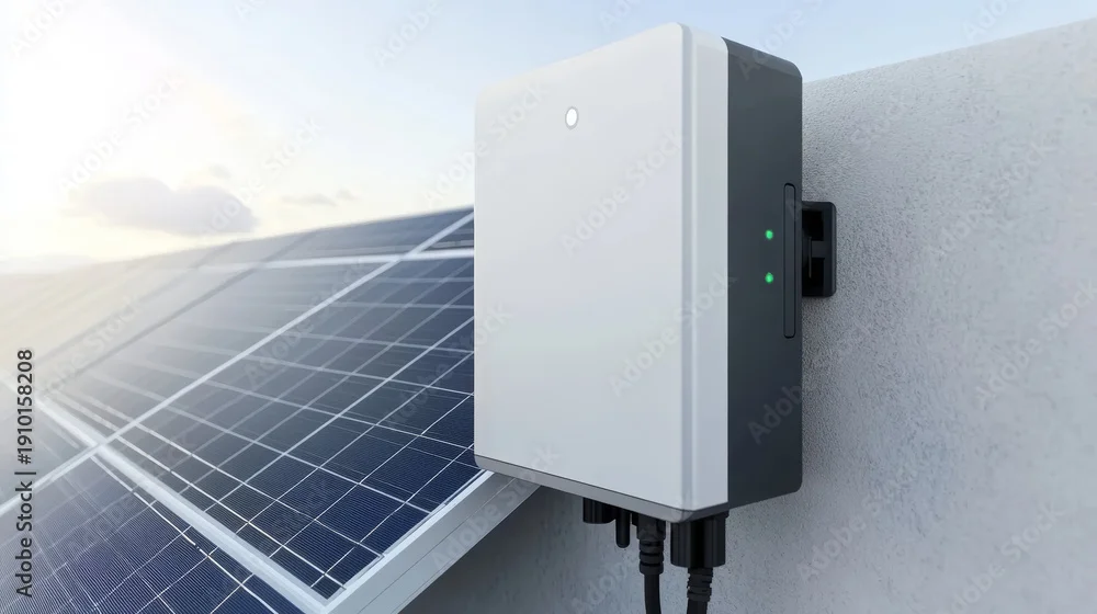 Solar panel solar inverter renewable energy green power clean electricity rooftop system wall mounted outdoor equipment technology efficiency