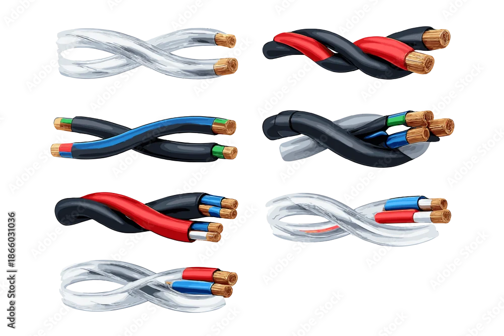 Fototapeta samoprzylepna Twisted electrical wires with exposed copper ends
