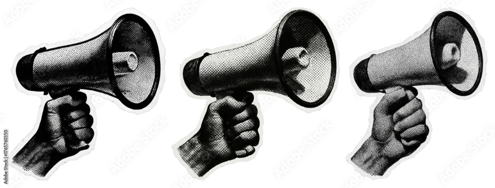 Fototapeta samoprzylepna Vintage megaphones in hands - do przedpokoju - Picturewall.pl