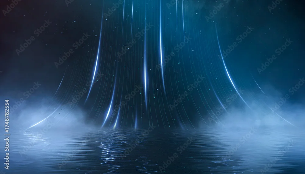 Fototapeta samoprzylepna Wet asphalt, reflection of neon lights, a searchlight, smoke. Abstract light in a dark empty street with smoke, smog. Dark background scene of empty street, night view, night city.