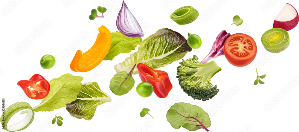 Fototapeta samoprzylepna Falling vegetables, fresh salad of bell pepper, tomato and lettuce leaves - do restauracji - Picturewall.pl