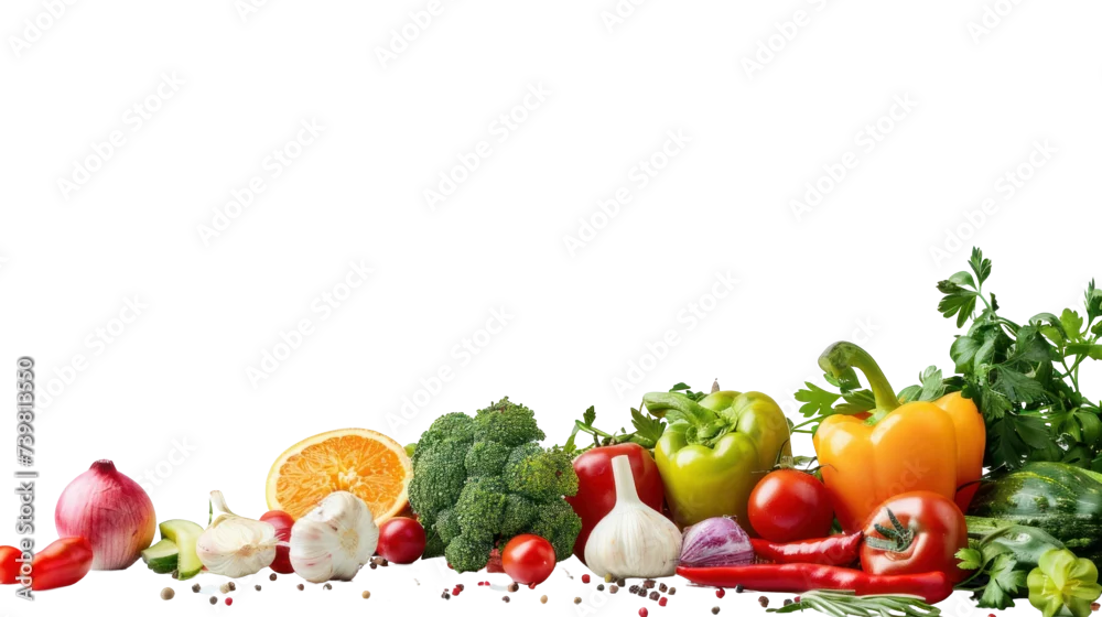 Fototapeta samoprzylepna Food photography different fruits and vegetables isolated on transparent and white background.PNG image