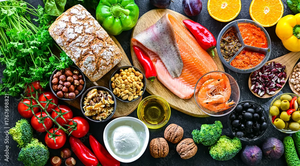 Fototapeta samoprzylepna Food products representing the Mediterranean diet