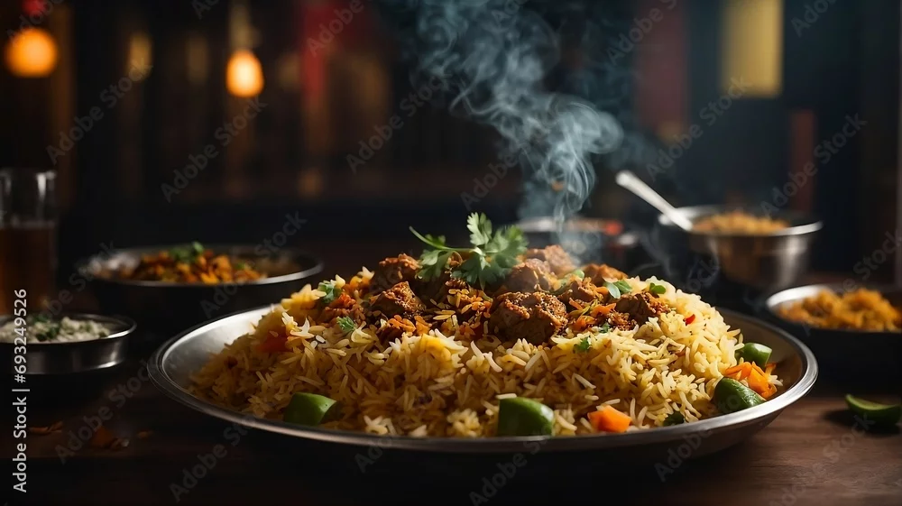 Fototapeta samoprzylepna high quality photography of Indian biriyani on restaurant background. Indian food concept.