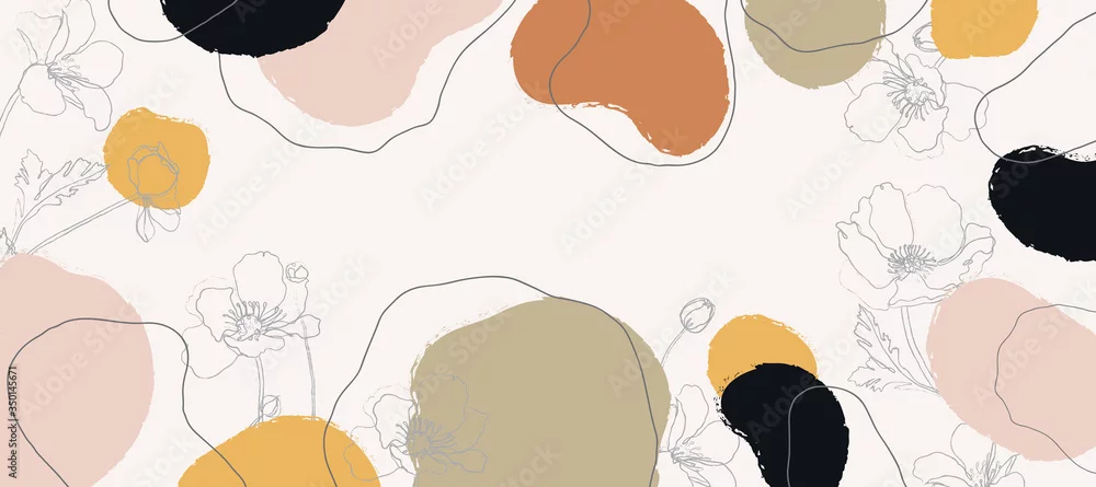 Abstract background vector with natural and floral line arts, Memphis style, Organic shape. Creative pattern with hand drawn shapes. Design background for social media post, cover, print and wallpaper