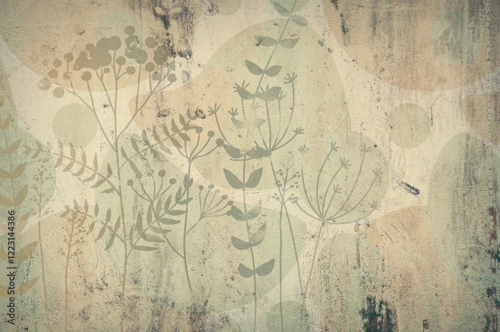 Fototapeta samoprzylepna Floral background for wallpaper, watercolor greenery, can be used as poster. Botanical art. Mural. Leaves on marble.