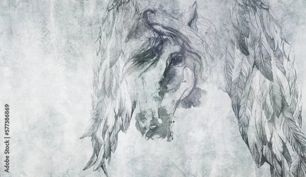 Fototapeta samoprzylepna Horse with wings on the wall. Design for wallpaper, mural, wall decoration, poster.